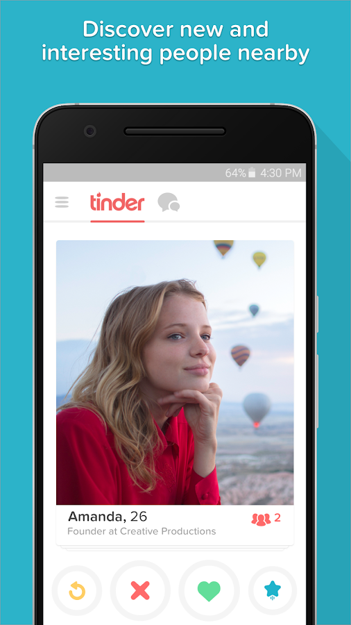 Tinder adalah cara yang menyenangkan untuk berhubungan dengan orang-orang baru dan menarik di sekitarmu. Gesek kanan untuk menyukai atau kiri untuk melewati. Jika seseorang menyukaimu kembali, itu jodoh! Ngobrol dengan satu jodoh atau ambil foto untuk membagikan Momen dengan semua jodohmu sekaligus. Ini adalah cara baru untuk mengekspresikan dirimu dan membagikan dengan teman-teman.